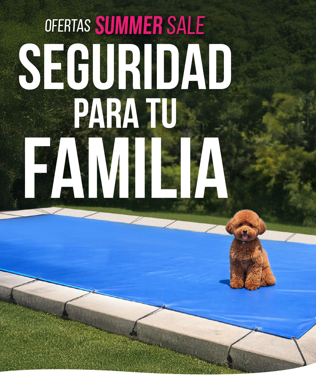Con la seguridad de nuestros cobertores de piscina mantén seguros a tus niños y mascotas de la casa, al impedirla inmersión involuntaria.