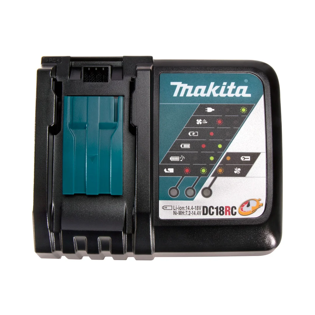 No importa la herramienta Makita que estés utilizando, si funciona con una batería de Litio de los modelos BL1860B, BL1850B, BL1840B, BL1830B y BL1815N (18V) este cargador es compatible. Este modelo ofrece una carga rápida en comparación con el cargador convencional de la misma marca. El mismo cuenta con un ventilador que enfría la batería permitiendo la optimización de la carga en términos de corriente, tensión y temperatura. Adicionalmente se le puede configurar un sonido de modo que nos alerte una vez este recargada la batería.
