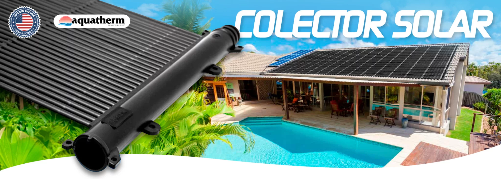 Colector solar de piscina para uso residencial o comercial, fabricado en Estados Unidos por Aquatherm, modelo UltraSwim – el mayor fabricante internacional de soluciones de climatización solar para piscinas.