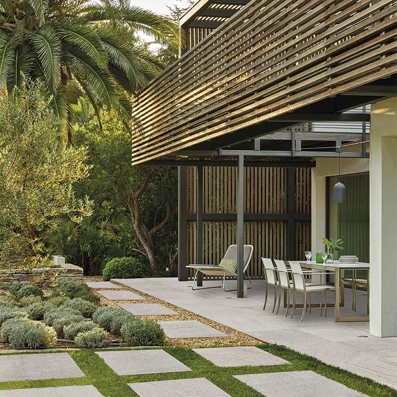 El gres porcelánico Rosa Gres es más frío que la cantera, la madera y los materiales sintéticos, ofreciendo un confort térmico superior incluso en climas cálidos.