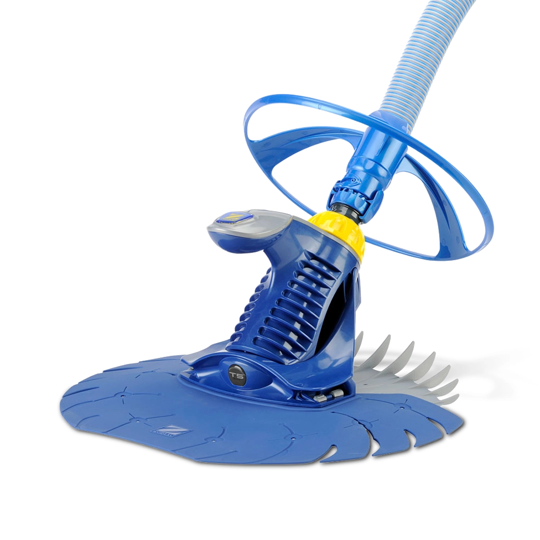 El limpiafondo T5 Duo se instala fácilmente en el sistema de filtración de la piscina y utiliza la energía de la bomba para funcionar. Capturan los residuos mediante el efecto de succión y lo almacenan en el pre-filtro de la bomba.