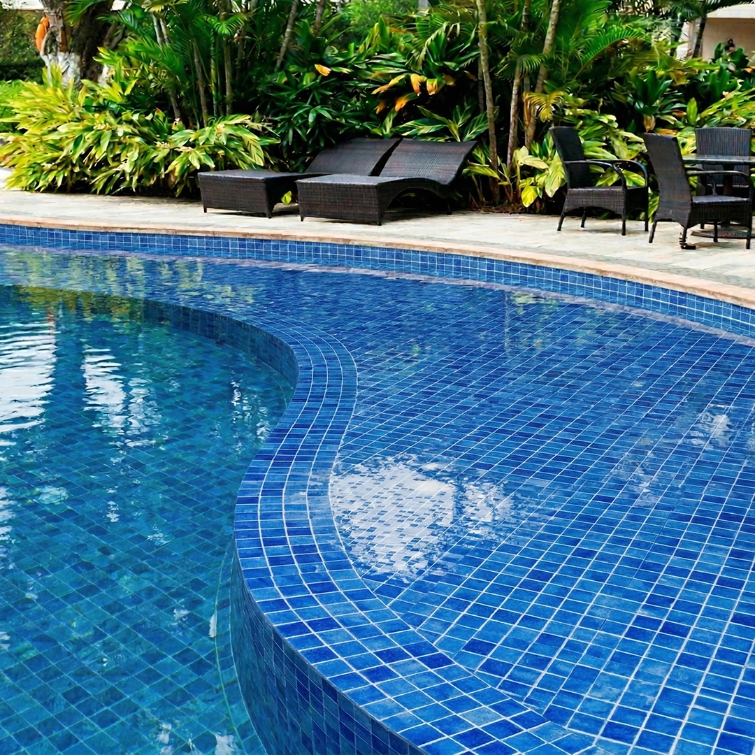 Cada mosaico ha sido meticulosamente diseñado para reflejar la belleza del arte y la exquisitez del vidrio. Nuestros patrones y colores únicos añaden un toque de distinción a cualquier piscina. Fabricados con vidrio de alta calidad y tecnología de vanguardia, estos mosaicos resisten la decoloración y los efectos del agua clorada, asegurando su belleza y elegancia a largo plazo.