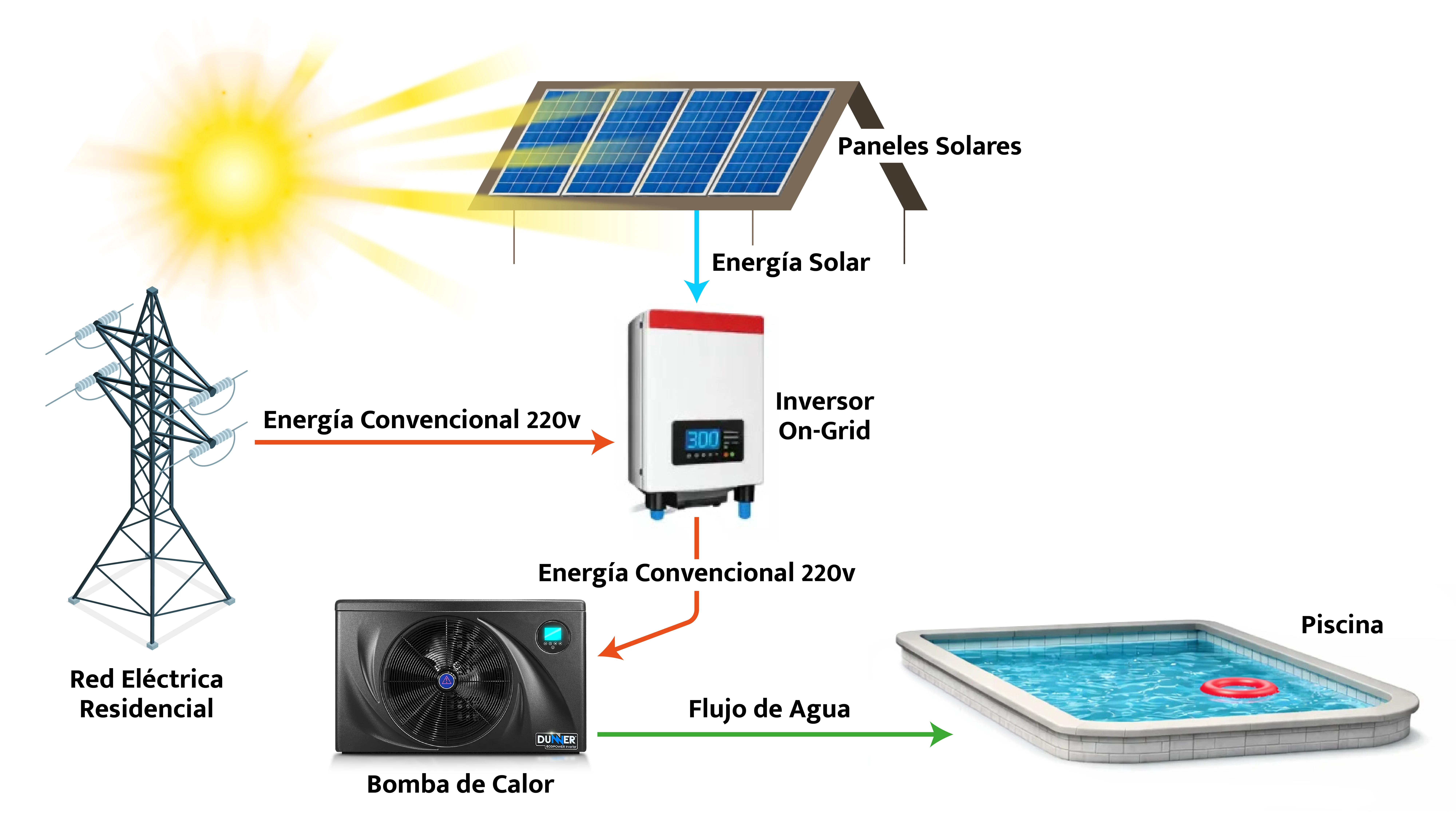 Con el Sistema ECOSOLAR MULTIPOWER Dunner podrás disminuir entre 60% hasta un 90% el consumo energético de tu Bomba de Calor. Esto significa un ahorro económico en tu cuenta de electricidad debido al disminución del consumo de la red eléctrica convencional. El retorno de la inversión podría variar de 18 a 24 meses según el uso y generación fotovoltaica de los paneles.