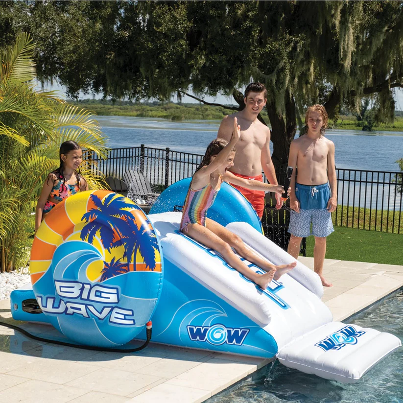 Con el tobogán WAVE SLIDE de WOW podrás llevar la diversión a cualquier lugar, ya sea tu patio trasero, un muelle o una piscina, además no tendrás que preocuparte por el verano porque siempre estará fresco y será el juguete mas amado de la temporada. Ideal para niños y adultos, cuenta con pontones que le brindan estabilidad, un increíble aspersor, escalones EZ moldeados en la parte trasera para subir y manijas moldeadas en el costado para facilitar el transporte.